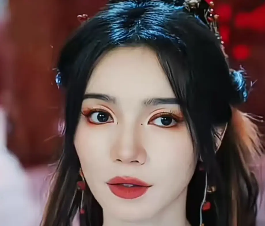 她在剧中的妆容很强调眉眼,一双丹凤眼刻画得又妩媚又有风情,明知道她是反派,大众也对她恨不起来,只因为她颜值太高。
